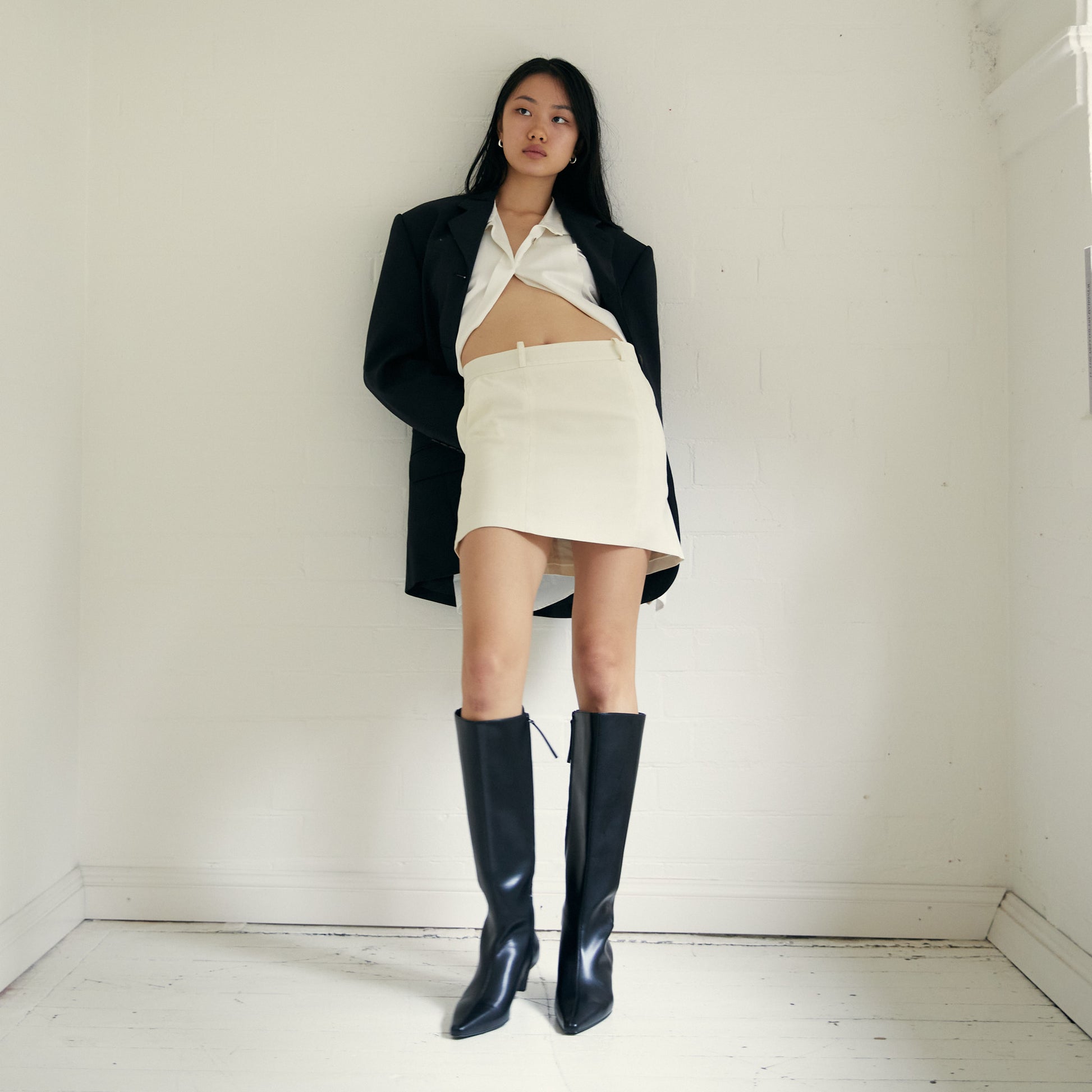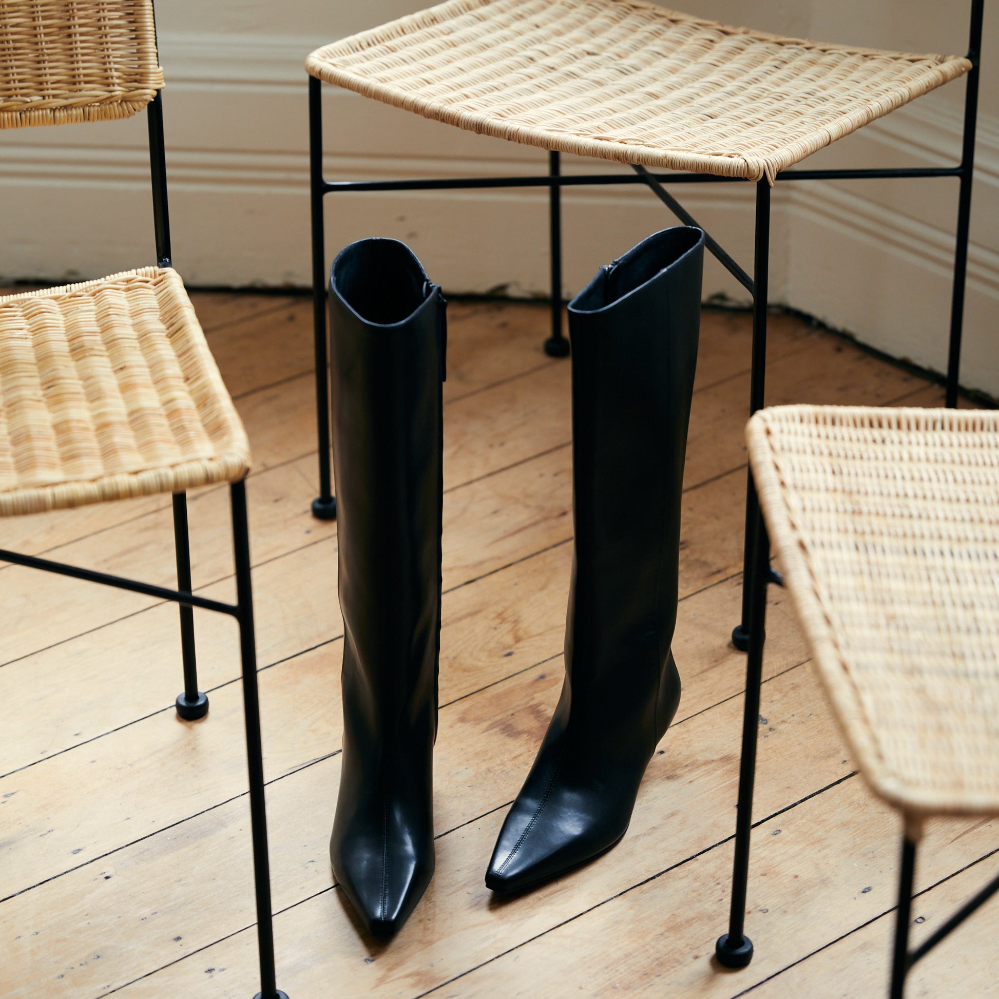 The Leni Knee High Boot is dedicated to Edie Collective's rescue kitten, Leni, for the custom chew marks she kindly left on their final prototype the morning they received them.