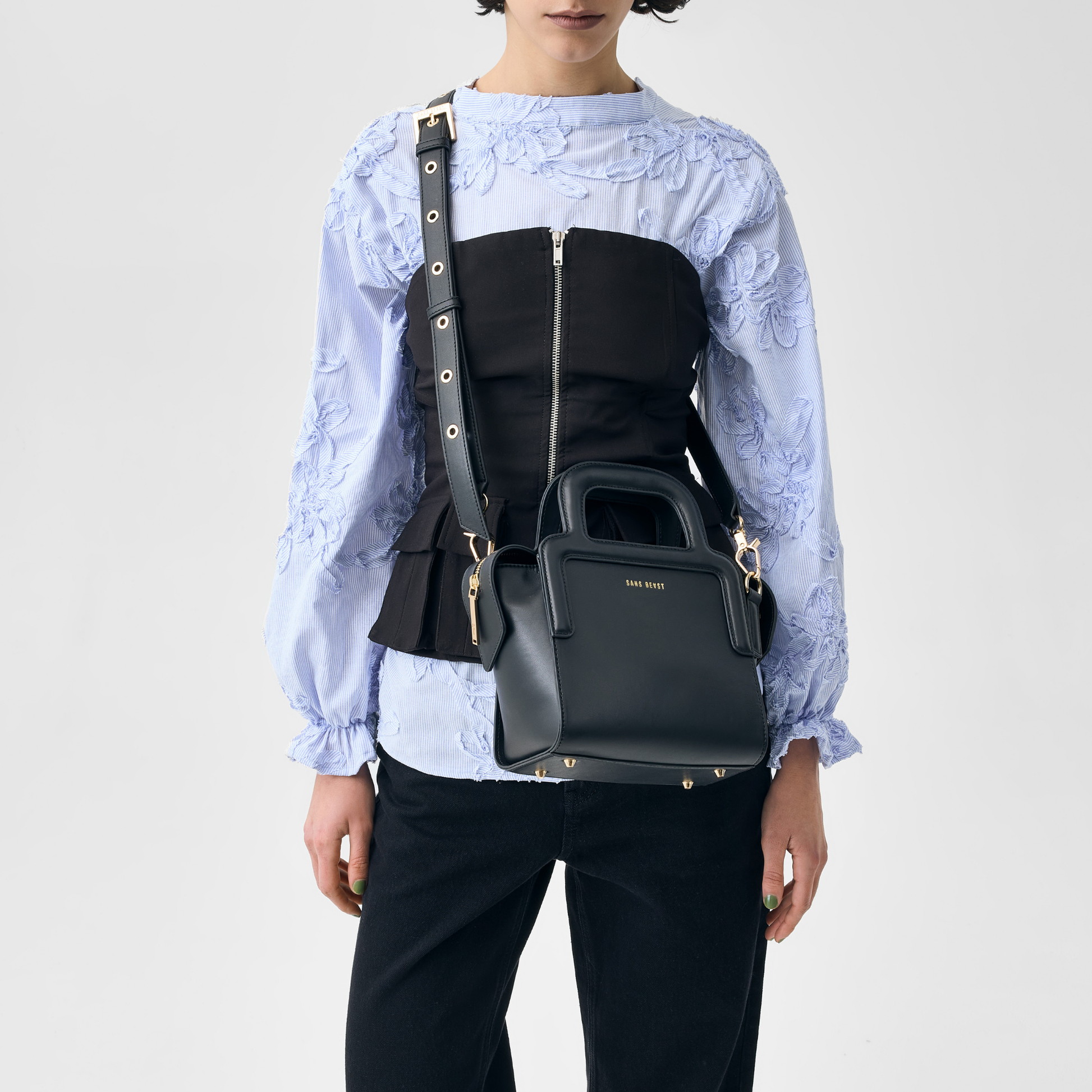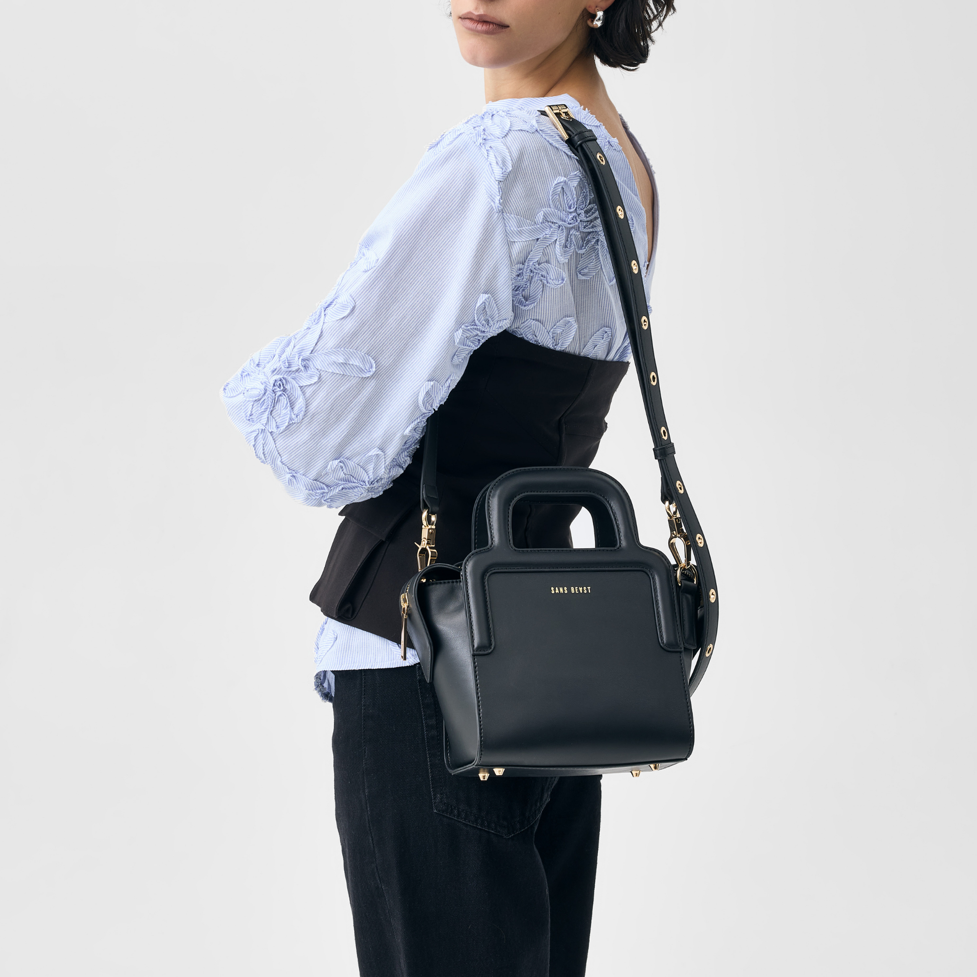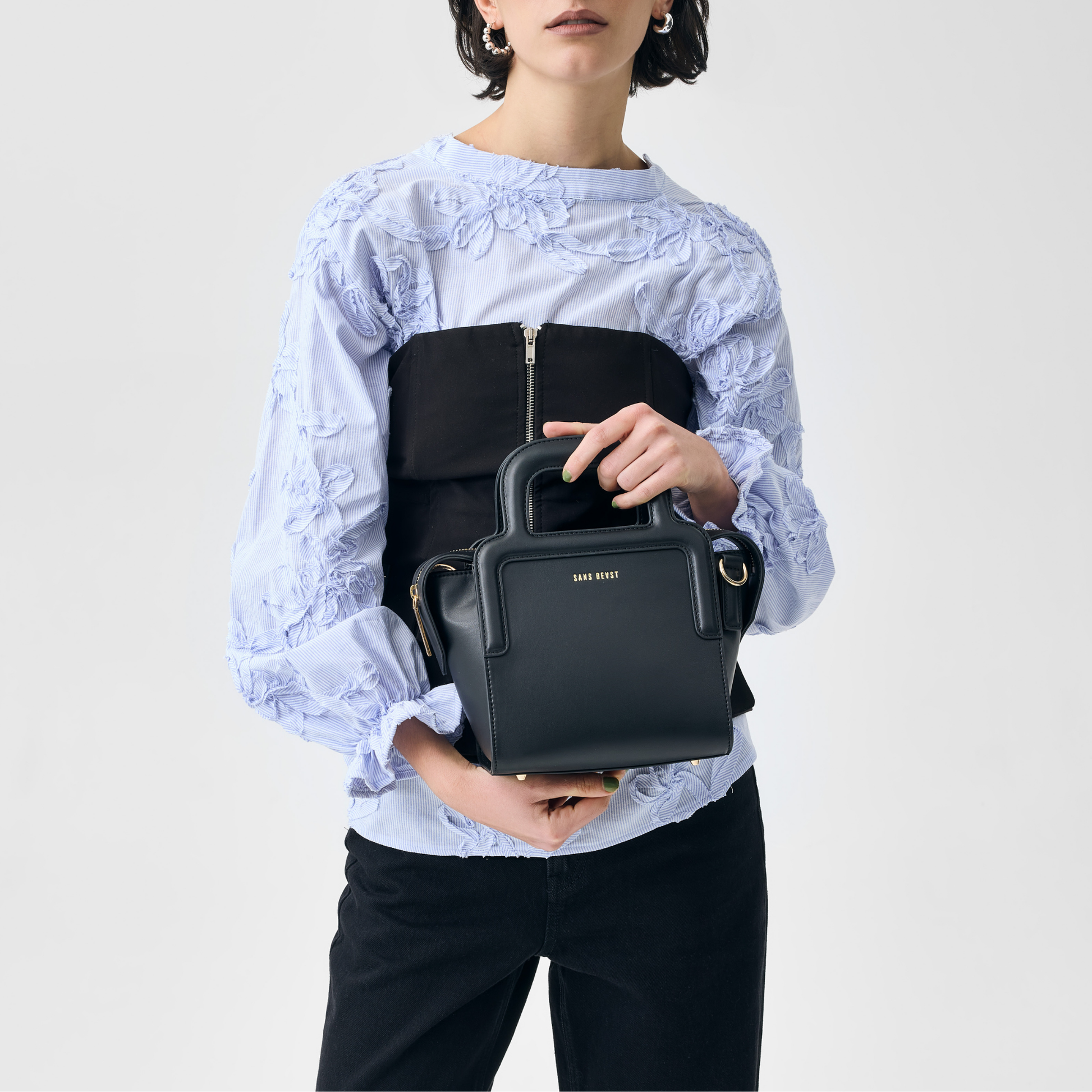 The Long Lunch Mini in Noir (black) is small in scale but big on impact. With its sculptural top handles and softly structured body, this compact carry offers a confident, modern silhouette that transitions effortlessly from day to night.